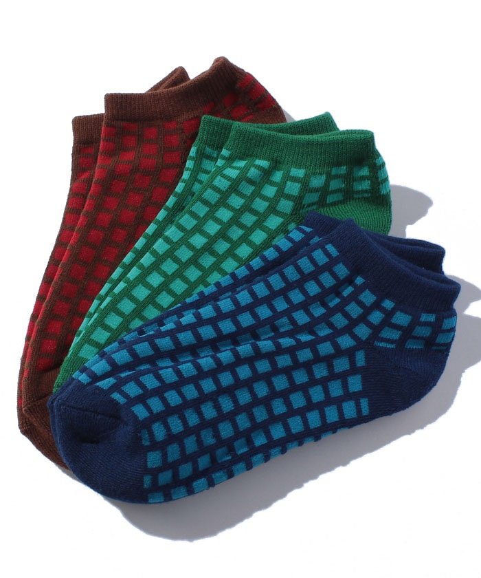 カラーブロックが可愛いデザインのカバーソックス3点セット。