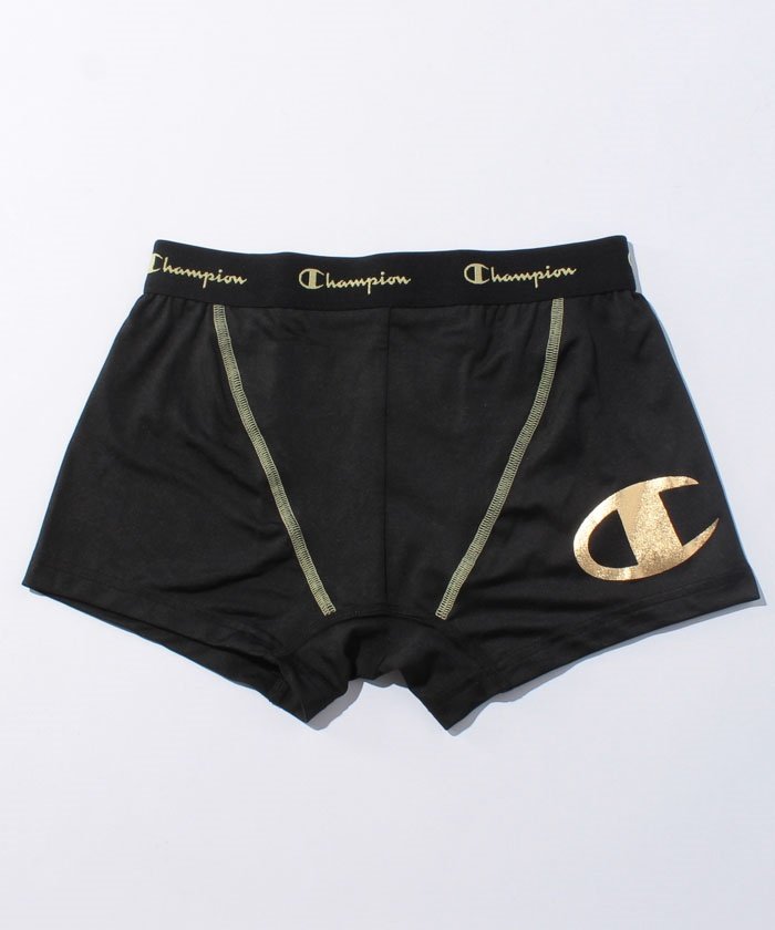 ビッグなCHAMPIONロゴのデザインが特徴のポリエステルベア天ボクサーパンツです。普段用としても運動用としても活用いただけます。