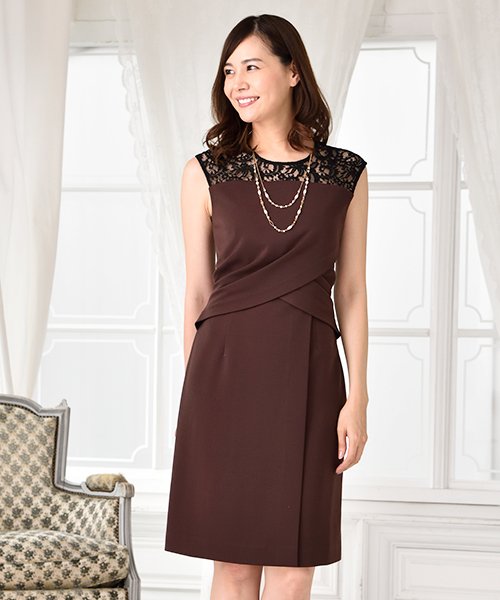 しっかりとした落ち感のある素材を使用したタイトワンピース。ヨークはレース素材を使用しています。いやらしくならない適度な透け感はパーティーシーンにピッタリです♪