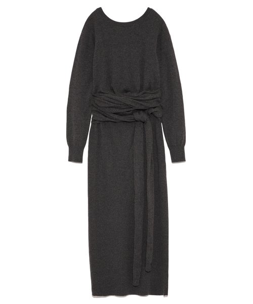 トップス部分は適度なゆとりを持たせてふわりとしたシルエットを表現しつつ、ウエストからは下はすっきりとさせたニットワンピース。