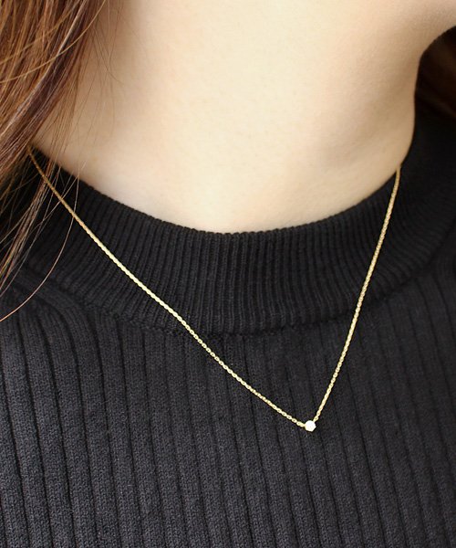 K10素材の、キュービックジルコニアを1粒セットしたネックレス。