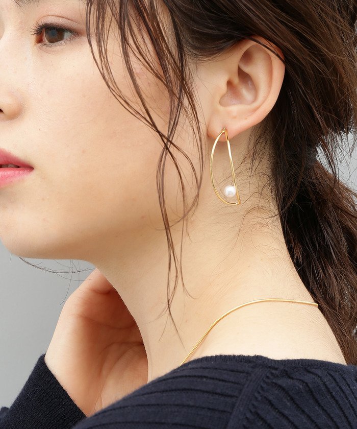 ゴールドのバーでパールをはさんだようなデザインが、モダンな印象のピアス。軽く繊細な仕上がりのデザインはスタイリングに馴染み、さりげなく華奢に見せてくれます。デイリー使いはもちろん、パーティーシーンでも活躍しそう。単調になりがちなパールデザインのアクセサリーを、クールかつ上品な印象に格上げします。