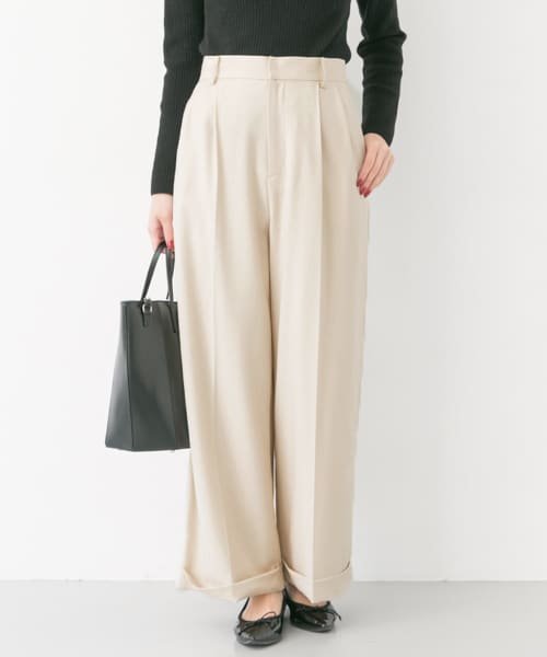 フロントにタック、センタープレスを施し、ワイドシルエットながらスッキリキレイ見えを叶えた秋冬仕様のパンツ。先ソニー素材を使用し、やわらかく丈夫なため重宝する1枚です。