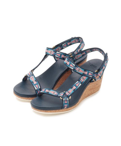 多色使いのカラフルなデザインが、目を惹くサンダル。すらっと美しいレッグラインを演出する、ウェッジソールも魅力的です。ネイティブ柄を施したストラップデザインに、こなれムード漂う一品。