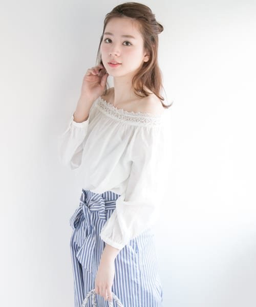 ショルダー部分にあしらった繊細なレースが甘くなり過ぎずセンシュアルな女性らしさを演出してくれます。エアリーに風になびく薄手のお素材が、真夏まで涼しくお召しいただける上、体型を自然にカバーしてくれるメリットづくしの1枚。リネンながら手洗い可能という機能性にも優れた優秀なブラウスです。