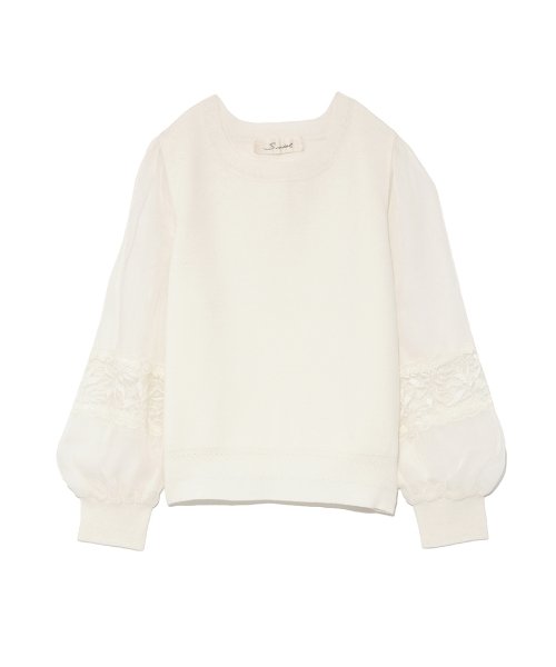 ふんわりとした長袖部分にシフォン生地とレースで切り替えを入れたデザインで、フェミニンさをトッピング。