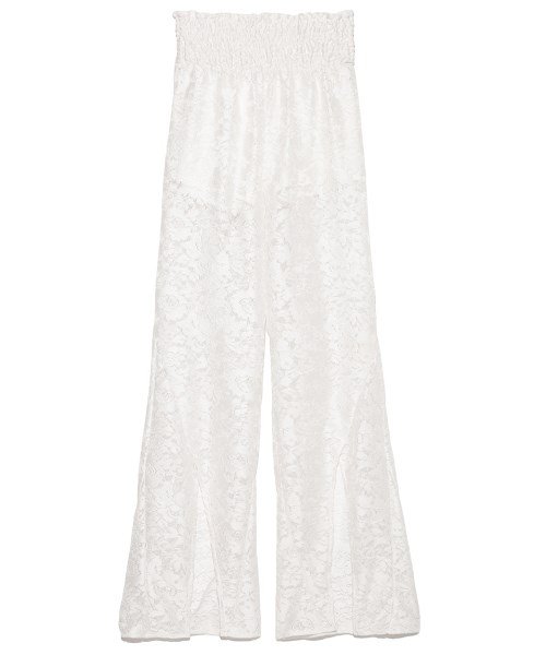 総レース仕立てのレディな、ハイウエストフレアパンツ。