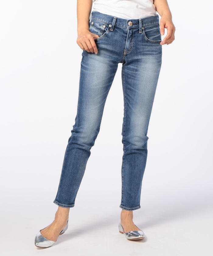 足首をすっきりみせるアンクル丈のスキニーデニムパンツです。計算された陰影やひげが魅力で、本格的なユーズド感がレッグラインをきれいに引きたてます。着まわしやすいベーシックな5ポケットデザイン、動きやすいストレッチ性もポイント。オールシーズンの着こなしに活躍し、コーディネートの幅が広いアイテムです。