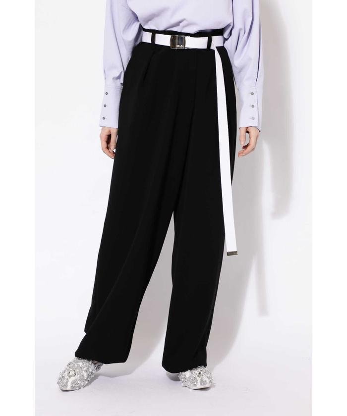 二重織の程よいふくらみとドレープ性を併せ持った、縦にも横にも伸びる2wayストレッチ素材を使用したボンタンパンツ。ヒップ周りはゆったりと、裾にかけてて細いシルエットのボンタンパンツに仕上げました。附属のベルトは長めに設定し、バックル部分には小さくmiciのロゴをレーザーで刻印。閉めた後バックルを隠すようにくるっと結んだスタイリングが今年らしくおススメです。裏毛のトップスに合わせてオールホワイトのスタイリングも◎。大人の女性に挑戦してもらいたい、程よくスポーティーにこなせるアイテムです。