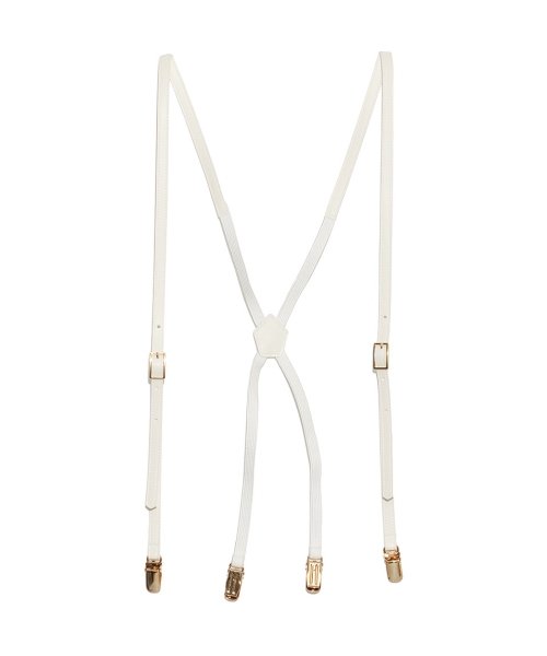 華奢な激細サスペンダー。つやつやと光沢感のあるメタルパーツとシックなカラバリで、子供っぽさを抑えました。Tシャツスタイルなどにさりげなくプラスして、ワンランク上の着こなしを楽しんで。