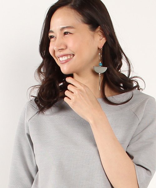 半月モチーフのウッドパーツが耳元で揺れるオトナなピアス。