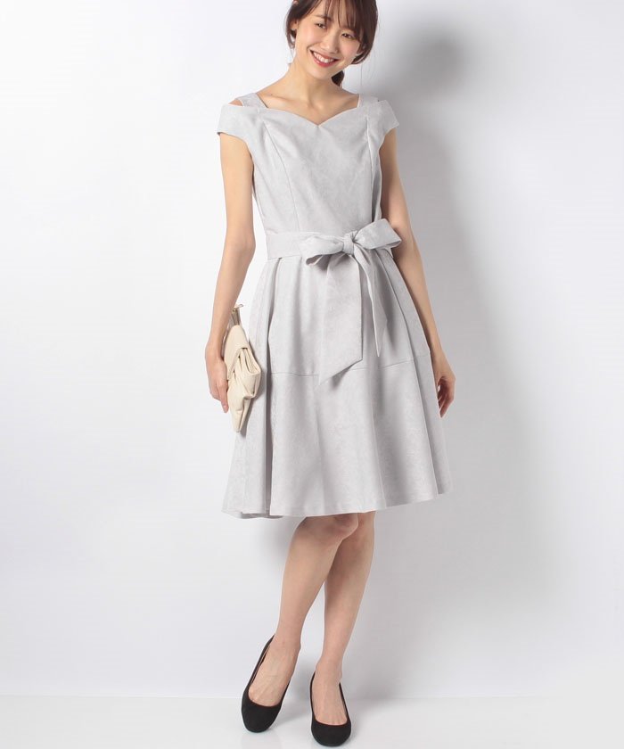 ジャカードで絵描き出したオーナメント柄がさりげなく浮かび上がるワンピース。ショルダー周りのちょっぴりクラシカルなカッティングや、メリハリ溢れるフレアシルエットが、レディの魅力を高めてくれるはず。