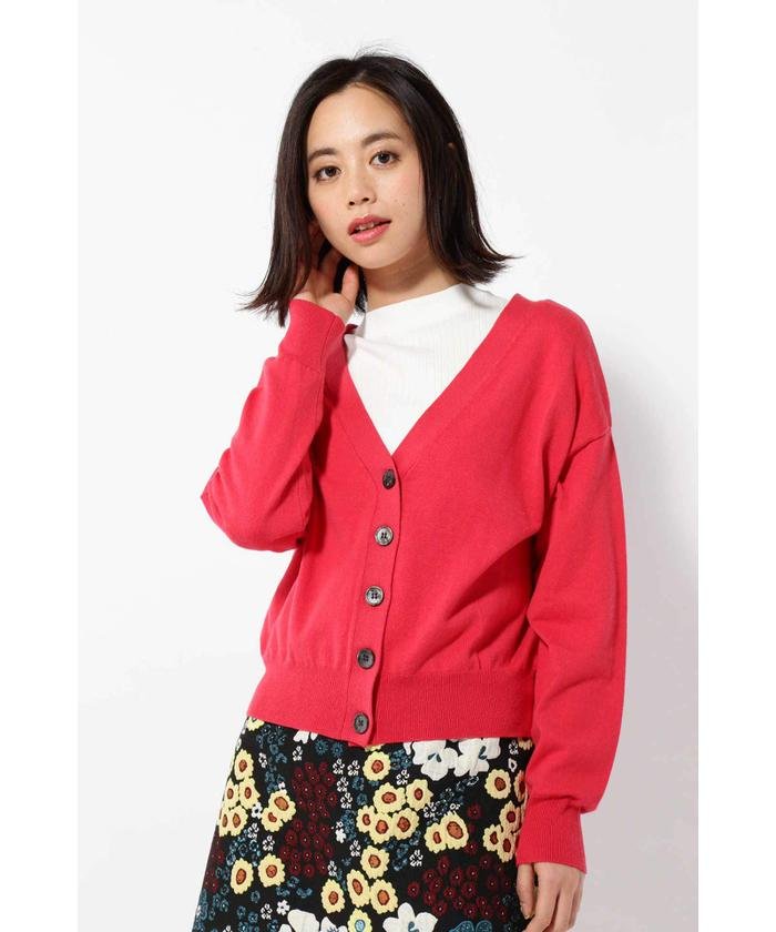 ショート丈が気分なVネックカーディガン。着用すると後ろに抜け感が出るシルエットになります。袖はすっきりとしているので、これからの季節アウターのインナーでも、ごわつきなく着ていただけます。ワイドパンツはもちろん、長め丈のスカート合わせでレディーな着こなしもオススメです。