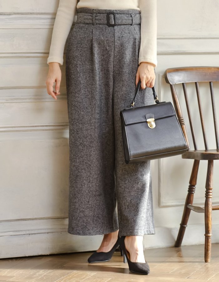 ウエストベルト付きツイードワイドパンツ
