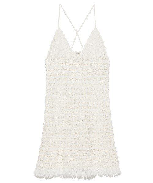 レイヤードするインナーによって変化を付けられる、透け感を残したクロシェニットのキャミワンピース。