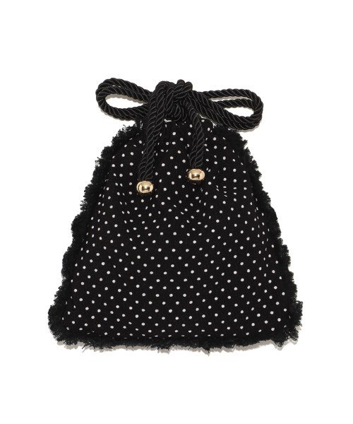 ラグジュアリーなジャガード織りが、着こなしのポイントに活躍する巾着バッグ。