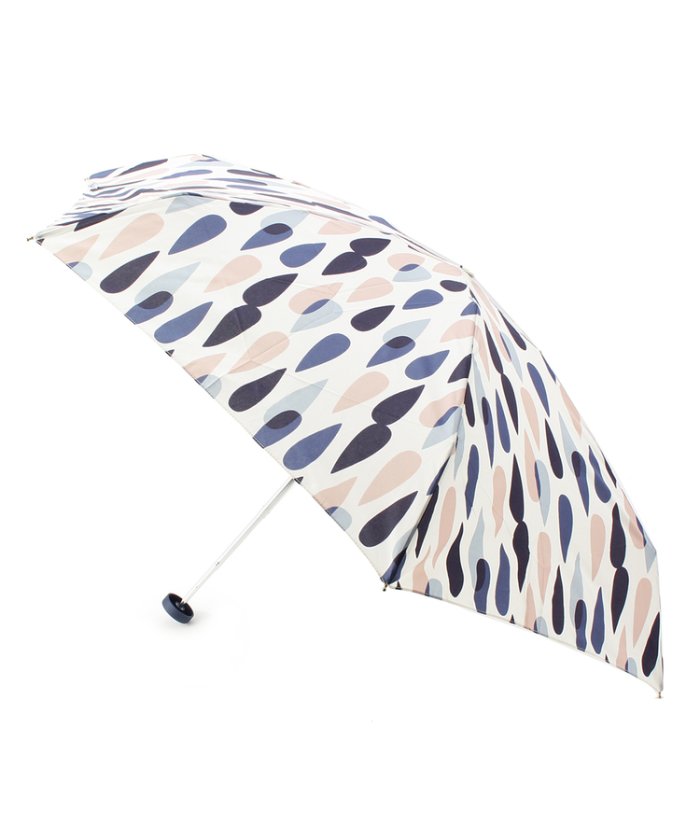 グラフィカルなドロップ柄をちりばめた晴雨兼用タイプの折り畳み傘。これからの季節のファッションのワンポイントにもぴったり。同柄のケースにコンパクトに収納できるので持ち運びにも便利です。