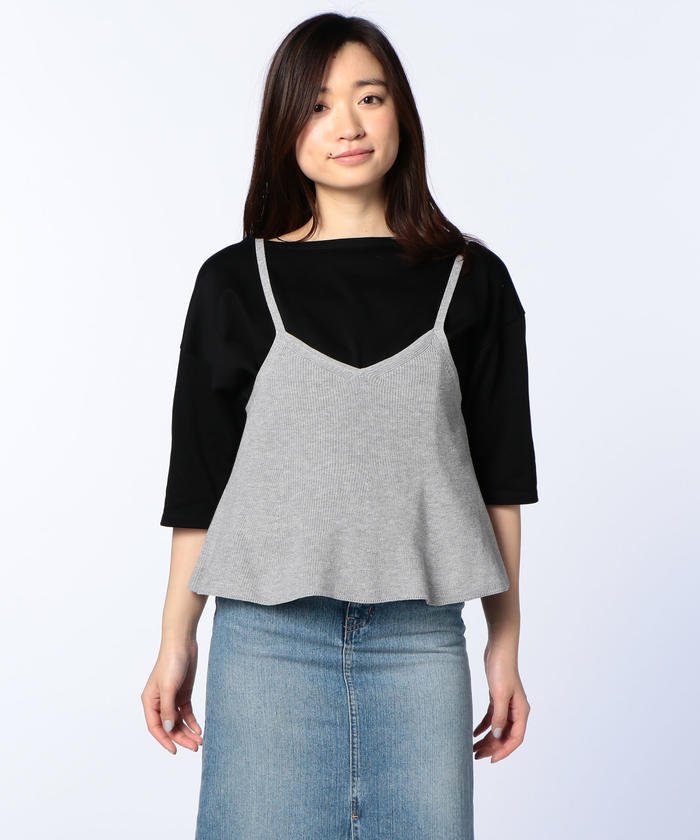 レイヤードに便利なニットキャミソール。畦編みによる端正な表情も魅力です。フレアシルエットがかわいらしく、ガーリーなムードのコーディネートを演出します。インナー次第でアレンジも多彩。同素材のスカート(品番:PM702003)とのセットアップも統一感が出て素敵です。