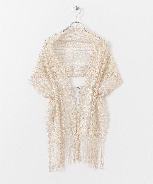 ドレススタイルの羽織りとして最適なレースストール。リボンを結んでとめる事が出来るため、肩から落ちる心配もございません。キラッと光るラメがとても華やか。