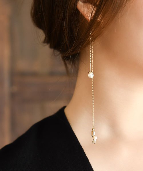 気分で長さをアレンジして楽しめるロングアメリカンピアスです。