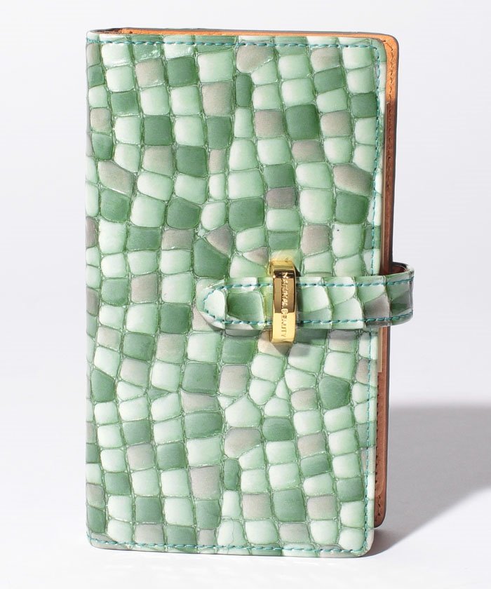 型押しデザイン&キャンディカラーがモードな雰囲気に仕上がったスマートフォンケース。ミラーや豊富なカードポケットがあり、機能性も満点です。ギフトにもおすすめ。