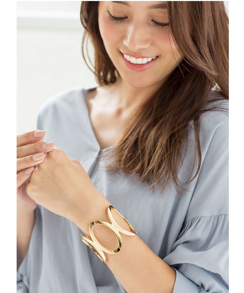 オーバル(楕円)のメタルパーツが並ぶ、存在感抜群のメタルバングル。 “なんか寂しい”手元をイッキに格好良く&印象を引き締めてくれる、メリハリの効いたデザインです。
