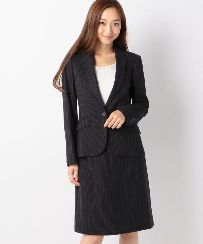 暖かな素材感が魅力のストライプ柄スーツセットが登場です。ベーシックなデザインはセットでも、単品でも使えて着まわし力も抜群。インに合わせるブラウスやシャツで印象を変えれば、コーディネートの幅が広がります。