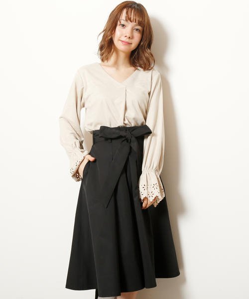 リボン付きタックフレアスカート