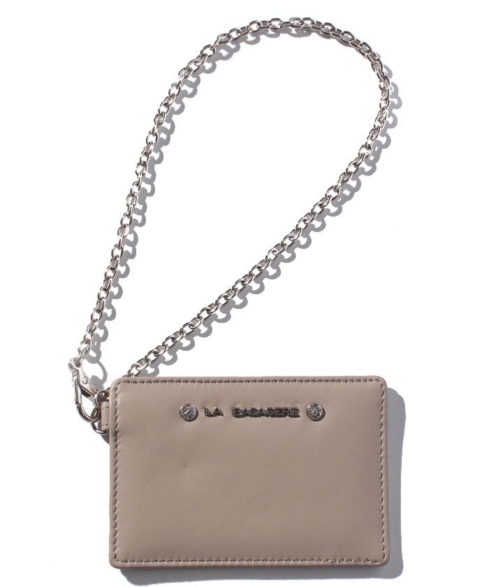 上品な配色と生地の光沢感、フロント部分のラ バガジェリーの横のスワロフスキーが高級感を漂わせるパスケース。 チェ?ン付なので鞄の持ち手に付けておくことで鞄の中で無くなりにくい。