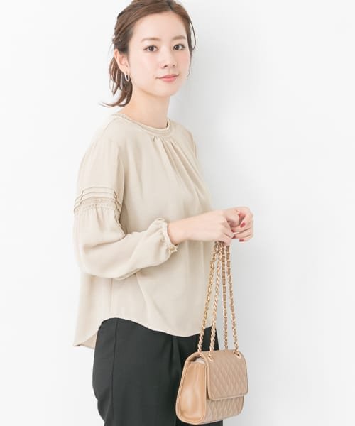 【とろみ素材が女性らしさをプラスする刺繍ブラウス】