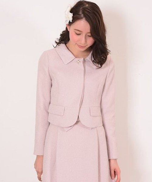 同素材のスカートと合わせてセットアップとして着るのがオススメです!キラッと光るビジュー釦が上品で華やかな印象。