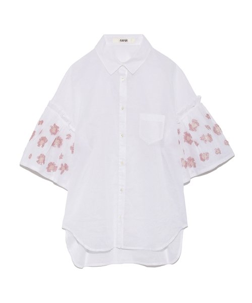 ビーズで表現したレオパード柄がリッチにきらめくシャツ。袖はタックディテールで、ボリュームとハリが出るようにしました。透け感のある薄手生地を使用しているので、インナーを合わせたスタイリングがお勧めです。
