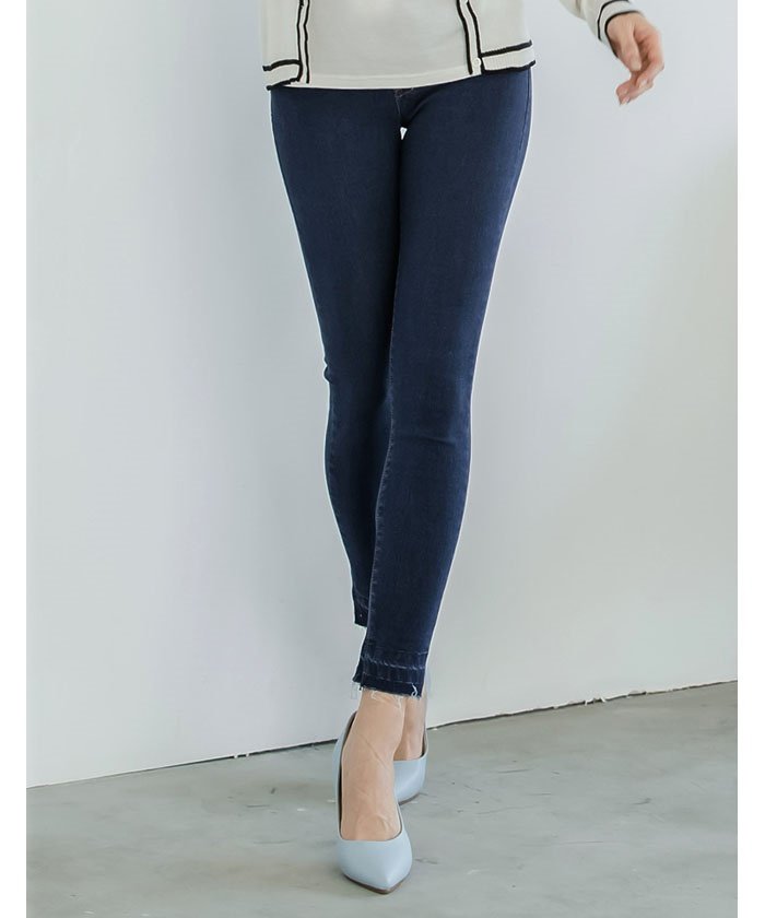 足首が見えるアンクル丈でほっそり美脚効果の期待できるストレッチデニム
