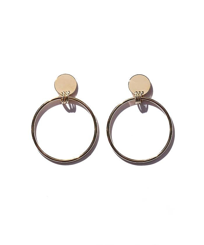 上品な雰囲気でつけられるメタルサークルフープピアス。2つのサークルモチーフがドッキングしたモードなデザイン。デイリーカジュアルから、イベントシーンまで幅広く合わせられるアイテムです。
