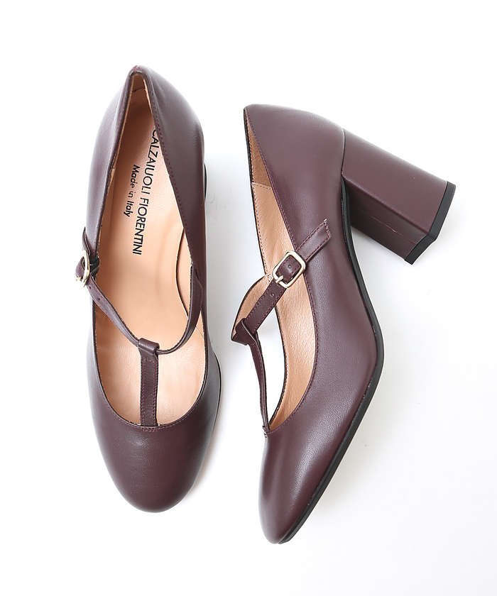 フェミニンな印象のラウンドトゥに華奢なTストラップが女性らしい一足。
