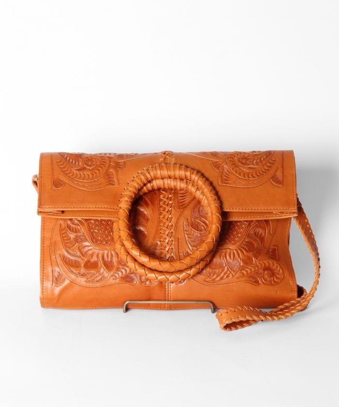 持ち手をレザー編み込みにしたトートバッグ。折りたたんでクラッチバッグとしても使用いただけます。※天然素材を使用し、手作業を加えている為一点一点風合いや色の出方若干異なります。予めご了承頂きますようお願い致します。