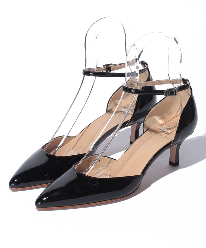 艶やかな質感と、ポインテッドトゥのシルエットがセンシュアルな印象のパンプス。サイドの肌が見えるセパレートタイプなので、素足はもちろんソックスと合わせてお茶目にハズしても。